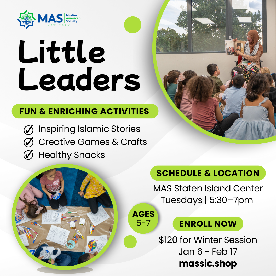 This weekly program focuses on nurturing the love of Allah SWT and Islam in children ages 5-7, providing them with a strong foundation of faith as they grow. Through engaging activities like Islamic story time, mentorship, games, crafts, and snacks, kids interact with compassionate halaqa leaders and build friendships in a welcoming, Islamic environment. Our goal is to inspire young leaders to learn, love, and live Islam, becoming lifelong, God-centered agents of change.