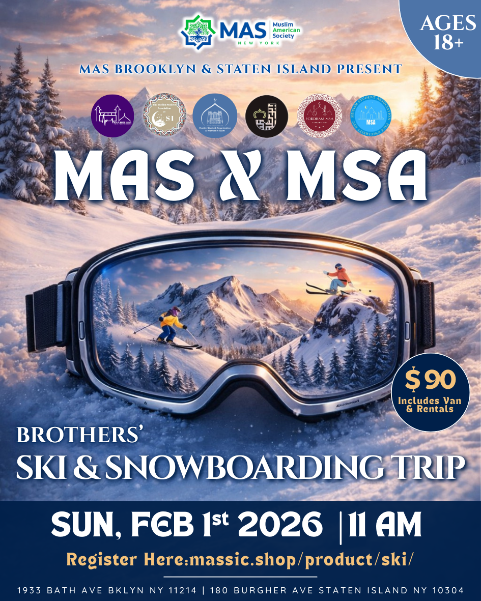 MAS Brooklyn & Staten Island, in collaboration with local MSAs, invite brothers (ages 18+) to an exciting MAS x MSA Brothers Ski & Snowboarding Trip on Sunday, February 1st, 2026.